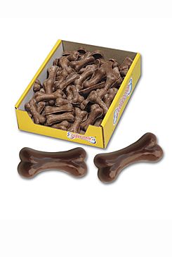 Doplňkové krmivo pro psy. Bonbony pro psy s čokoládovou příchutí ve tvaru kostiček.