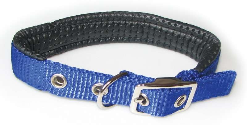 Pevný nylonový obojek s kovovými komponenty, vypodložený měkkou hladkou pryží. Vhodný pro velká plemena psů. Šířka 25mm, délka 55cm.