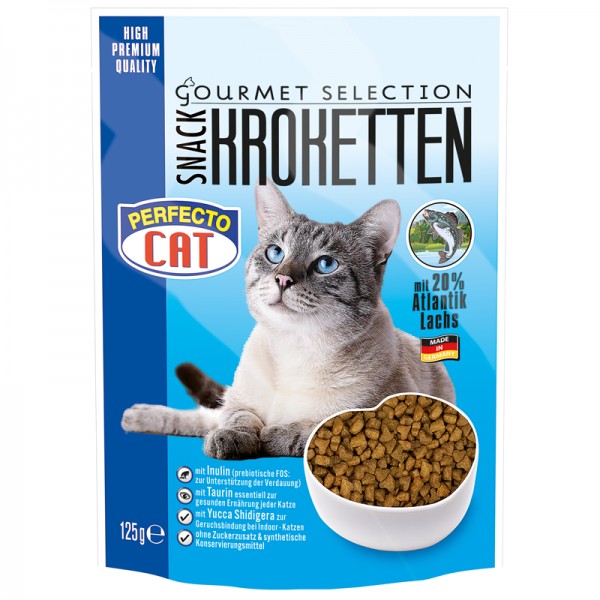 Perfecto Cat Kroketten snack 20% s atlatnským lososem 125gihned34 Kč/ ks30 Kč bez DPH